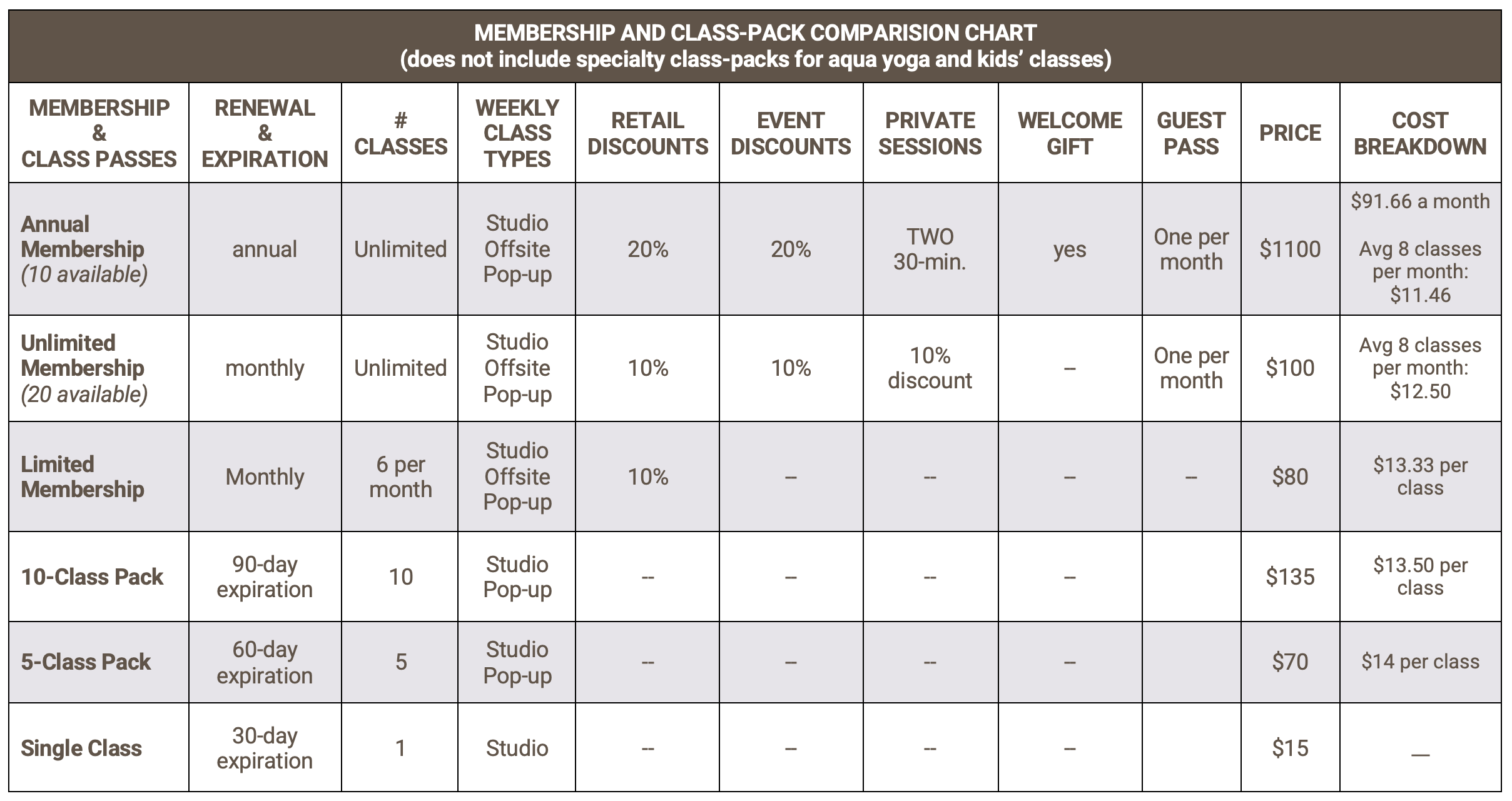 Best for yogi that irregularly attends class 1-2 times a week.